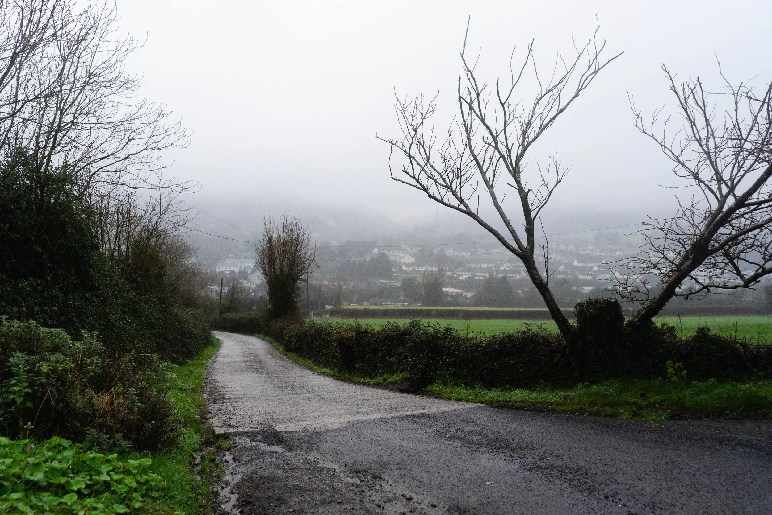 As the images might prove, this was truly a day for the ducks. Despite my sodden state, I was in high spirits as I walked the small back lanes that wind down to the valley floor and Kilmacanoge village. It’s only at this point that I realised how substantial the village is - with the N11 roaring straight through it, I’d never really comprehended that there was more than the petrol station, car park and bus shelters. But with the view of the mountains so throughly obscured, I had a lot more time to take in the school, church, and other important places that mark a place of community.
